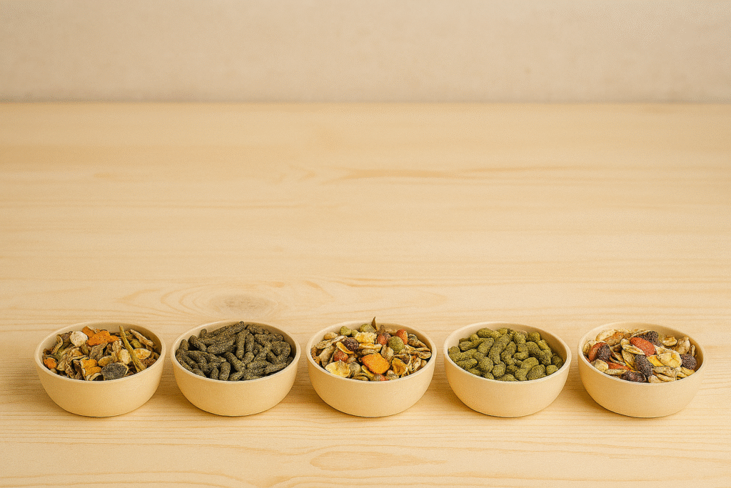🌾 Pellets & Spezialmischungen: Für eine ausgewogene Ernährung, mit wichtigen Vitaminen und Mineralstoffen.
