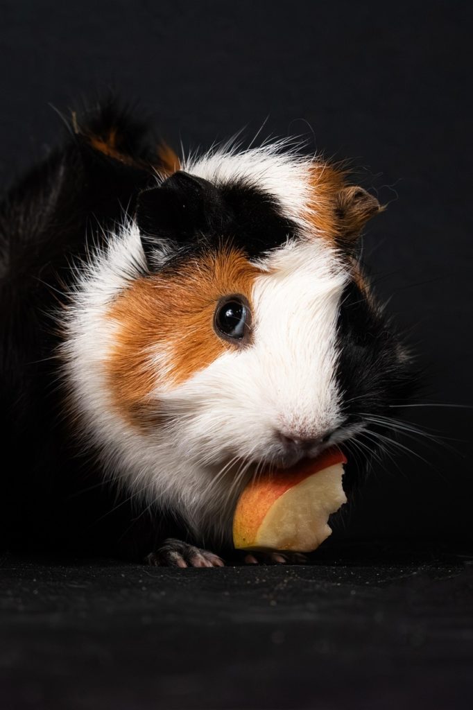 Ernährung: Heu, Gemüse, Obst, Pellets mit Vitamin C